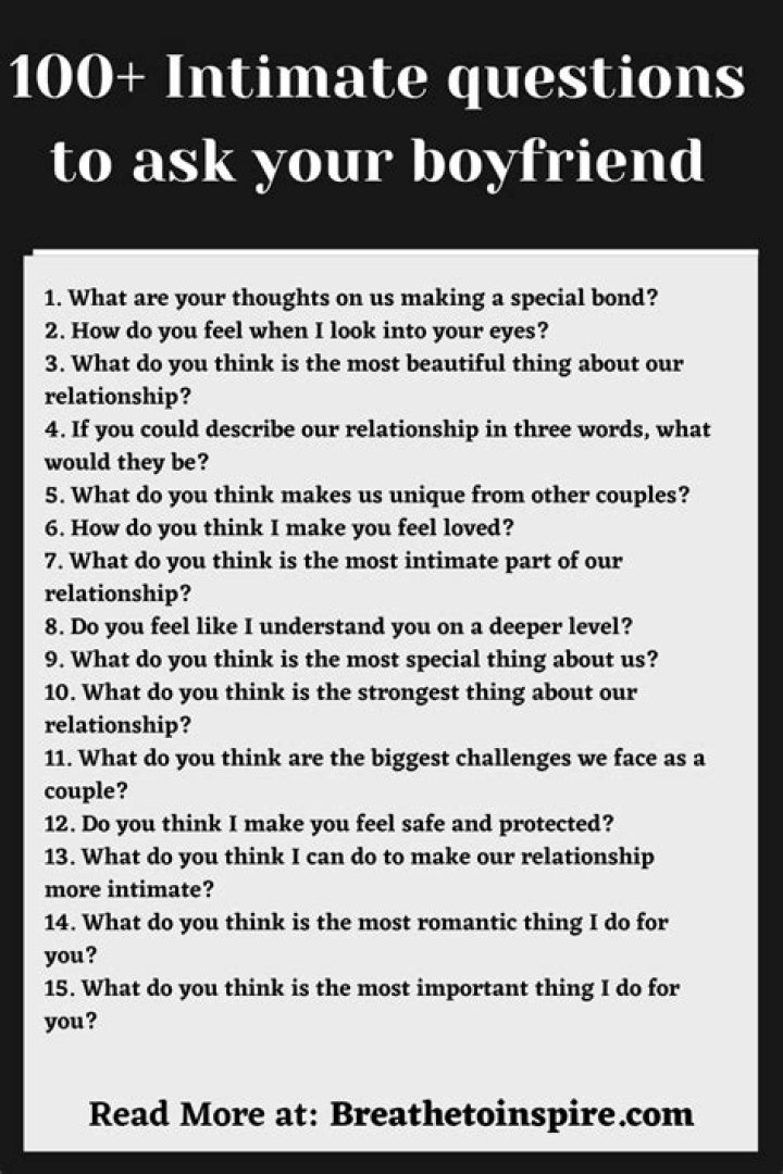 Question 5: How can I make conversations more meaningful?Listen actively to your boyfriend's thoughts and feelings. Show interest and empathy by asking clarifying questions and providing thoughtful responses. Share your own perspectives and experiences in a respectful and non-judgmental manner.