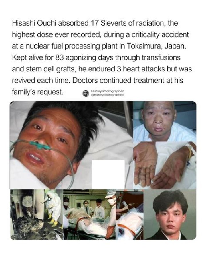 Hisashi Ouchi was a Japanese nuclear technician who was involved in an accident at a uranium reprocessing facility in 1999. He was exposed to a massive dose of radiation, which caused his body to begin to break down. He died three months later from multiple organ failure.